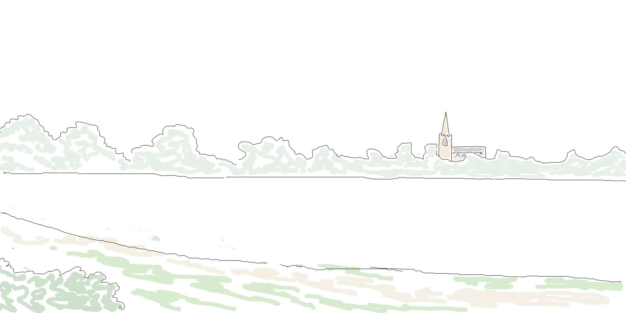 Yesterday's strip was the first time that I'd tried a polyptych, so I wanted to continue with this style today. I thought that I'd keep it fairly simple, as I'm still getting the hang of creating this style, so I based the background on yesterdays, altering a little and adding a church.