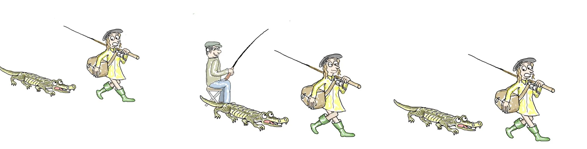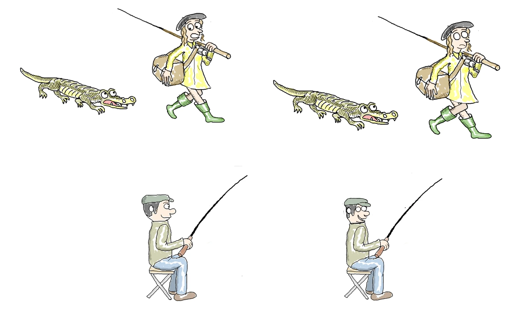 As the new idea also featured the two characters still walking along the riverbank, I copied the pose from yesterday and altered slightly. I also drew two different poses of a new character- an angler.