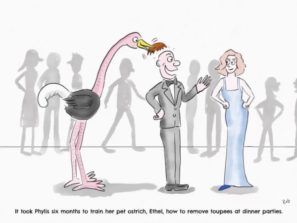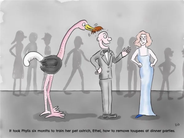 I then came up with the idea that the ostrich was of an ideal height to steal someone's hairpiece and that formed the basic idea of the gag.