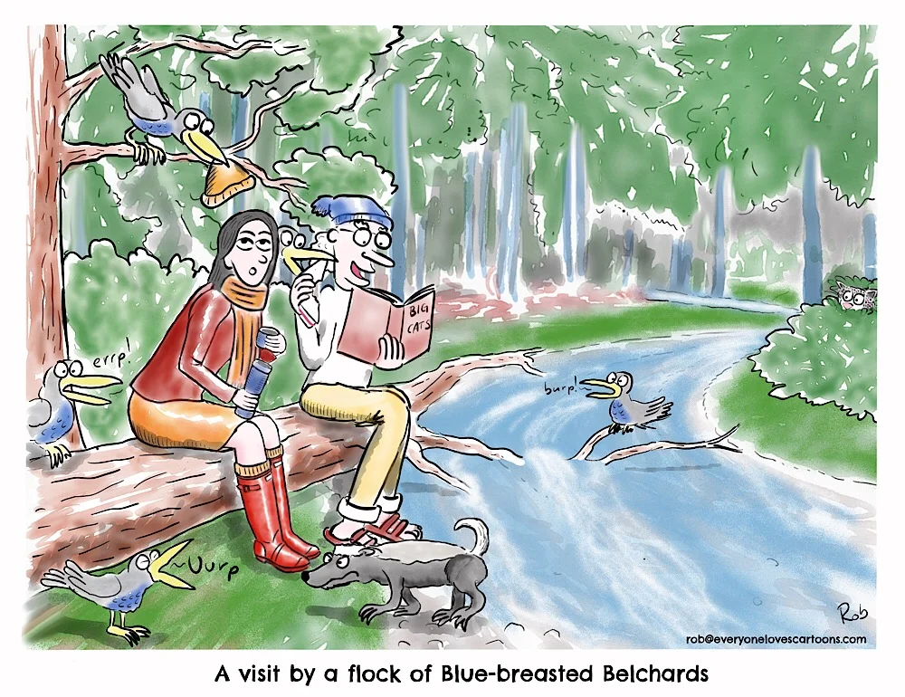 Here is the cartoon which appeared in a previous post. The characters featured are Lionel Peabody, noted amateur naturalist, who is accompanied everywhere by his faithful companion Reggie the honey badger. Lionel and Reggie have appeared in several previous cartoons, often in search of rare and unusual species.