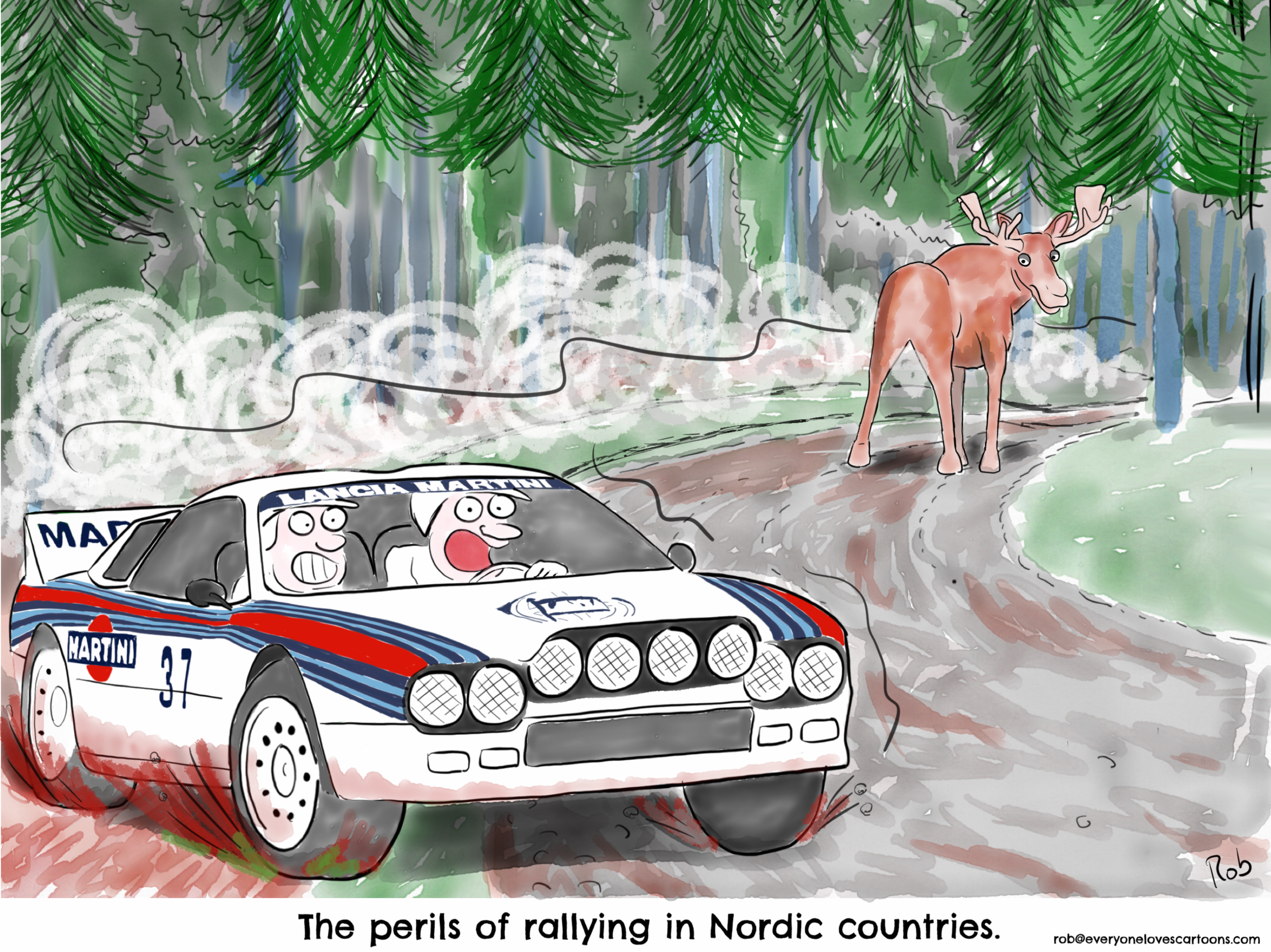 For the background for the new pic I was watching around for a background of a winding river or stream, but eventually decided to reuse the background from a previous cartoon:
