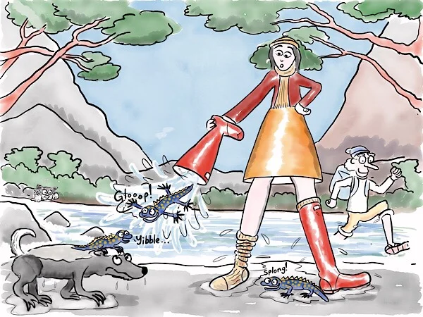 The long or wide shot is used to show the character in relation to their surrounding, to set the context for the cartoon.
