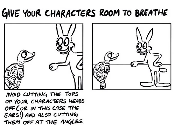 For dramatic effect, you can play around with your character’s breaking the frame of the cartoon.